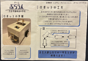 千葉ノード大会に限らず、ロボカップジュニアの大会では、大会会場でプレゼンテーションポスターの掲示が義務づけられています。ロボカップジュニアでは、情報の共有や表現能力の向上を大切にしているからです。